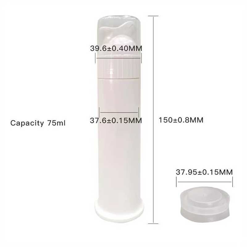 Nos bouteilles à pompe sans air et étanches pour dentifrice sont fabriquées à partir de PP de haute qualité, de qualité alimentaire, garantissant sécurité, durabilité et fiabilité. Conçues avec un système de pompe sans air, ces bouteilles permettent une distribution précise tout en empêchant la contamination et le gaspillage de produit. La capacité de 75 ml est idéale pour le dentifrice, les produits de soins bucco-dentaires et autres formulations visqueuses. Dotées d'excellentes performances d'étanchéité, elles sont adaptées aux voyages et sans dégâts. Des options d'étiquetage personnalisées sont disponibles, ce qui les rend parfaites pour les marques de distributeur, l'utilisation promotionnelle et l'emballage de détail.